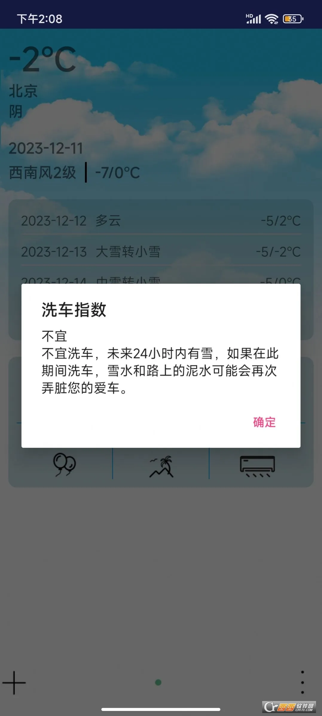 3、提供精确可靠的天气数据与生活指数,如穿衣、洗车、晾晒指数等,给予用户切实可行的天气服务。