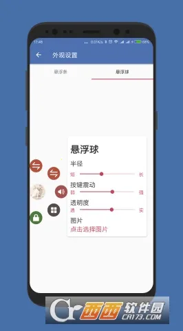 3、界面简洁:整个应用操作简单,界面无广告,可按自己的喜好和习惯设置功能,如点击、滑动对应的功能等,支持多种悬浮样式选择。