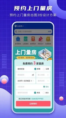 2、服务全流程:服务贯穿装修全周期,从前期户型规划、设计咨询,到中期量房、方案定制,再到后期施工对接、商家匹配,无需切换多平台即可完成所有环节,满足一站式装修需求。