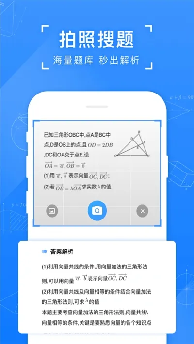 1、免费便捷:拍照就能搜答案解析,下载即用,无需注册,完全免费,让用户能快速获取解题帮助。