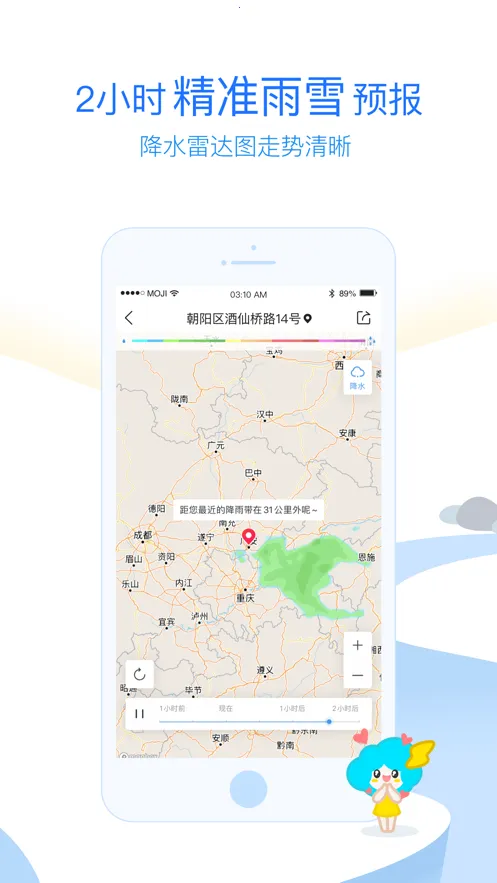1、精准预报:墨迹天气最新手机版基于领先技术和庞大气象数据,提供分钟级公里级天气预报,还有15天逐小时预报、48小时精准雨雪预报,精确到分钟级,新增温度风力气压可视化地图,让天气变化一目了然,极大方便日常出行。