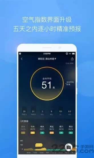 4、关注健康:实时监控空气质量,包含PM2.5、PM10等六项污染物及全国空气质量排行,还能预报未来5天的AQI级别雾霾情况,关爱健康全面护航。