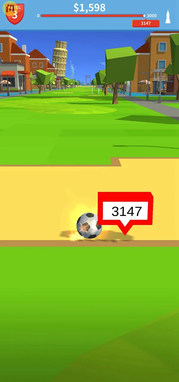 2. 不断升级力量与球的弹性,让足球飞得更远,探索更多新场景,尽享高空飞舞乐趣。
