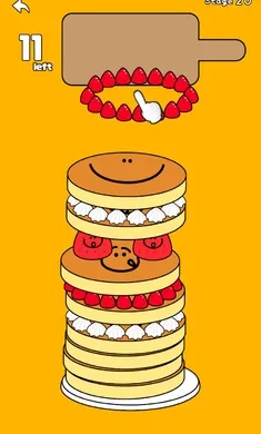 2. 游戏画面清新可爱,饼与饼之间可相互制衡,稍有倾斜时保持平衡是关键,能叠出更高的松饼塔。