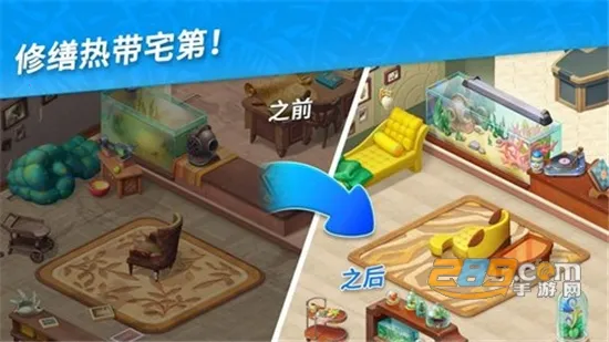 1. 玩家能打造专属热带庄园,筑就时尚独特宅第,实现家居设计师梦想。