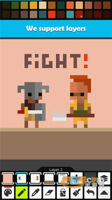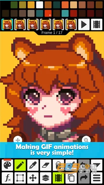2. 提供图层功能用于创作高级像素作品,能制作逐帧动画,创建动画并导出到GIF,分享作品超便捷。