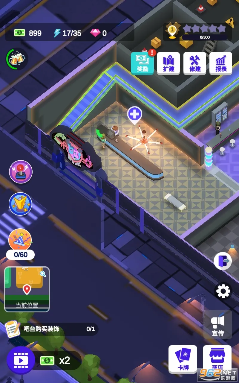 2. 指尖微操作,多种风格任你选,化身酒吧夜场老板,不断招募更多员工,修建全新设施,储备丰富福利活动,吸引更多顾客前来。