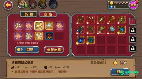 5、在装备中点击商城,可进行刷新出装备进行购买