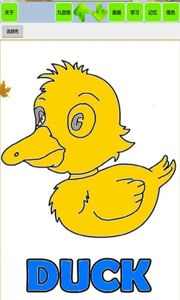 4. 游戏特点多样,能设置画笔粗细大小、填充颜色、用橡皮擦错,还可自由选色,关闭画画模板图进入学习环节了解动物形状、名称与拼音读法。