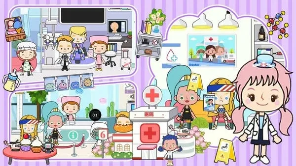 1、游戏玩法自由,可扮演医生为病人提供医疗服务,根据病情合理用药助其恢复,还能迎接新生儿降临,完成各类任务。