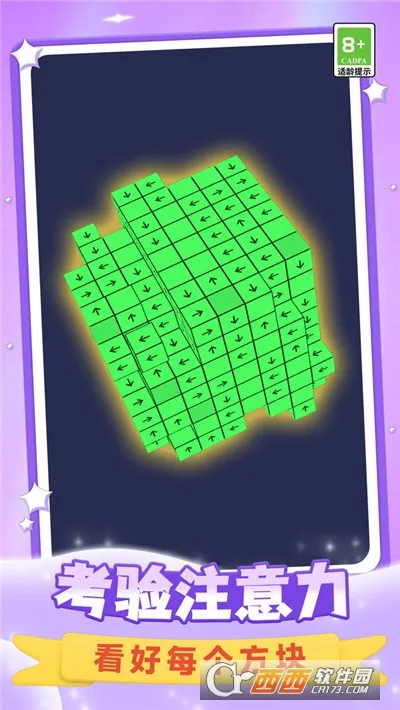2. 画面清新简约,色彩明亮,立方体造型独特,给人别样体验,无时间限制,可随时畅玩,还能与好友分享成绩、比拼排名。