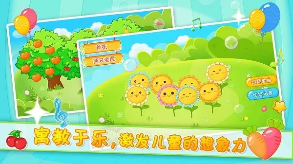 1. 精心设计八种常见启蒙乐器模拟系统,配有专属卡通教学场景和互动教程,满足多样化学习需求。