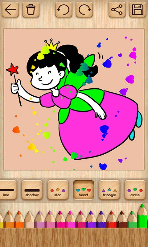 1. 拥有丰富的绘画素材,以美人鱼公主、飞机、汽车、恐龙等卡通形象为原型,提供涂色画画供孩子学习创作。