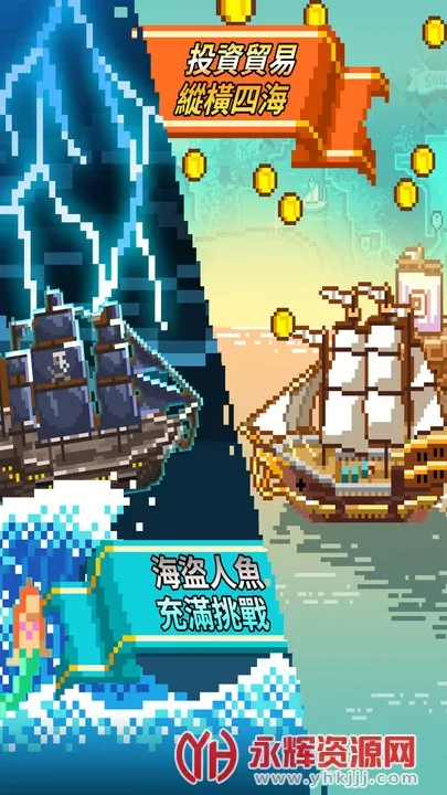 4. 游戏内容丰富,采用复古像素手绘风格,港口多样,航线自由,航行事件未知,船员职业丰富,经济策略有深度。