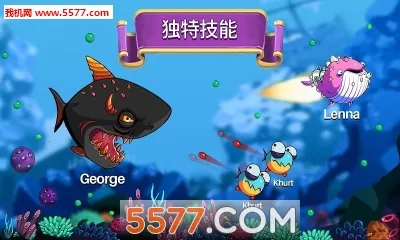 3. 提供几十种鱼类,可无限制吞噬,体验吞噬升级玩法,随着玩家升级,游戏难度不断提升,地图中鱼类和大鱼数量增加。