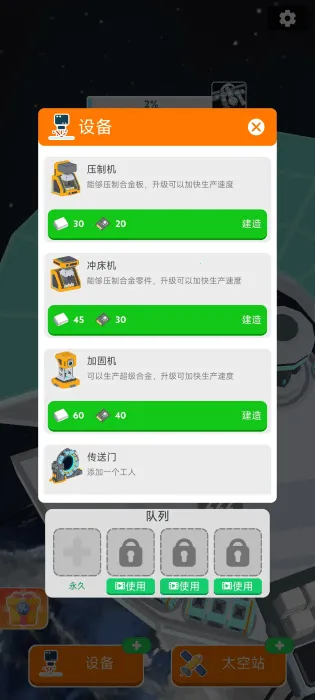 3. 随着太空站规模扩大,解锁和雇佣新太空员,提高建设效率,快速推进太空计划。