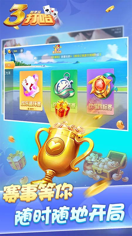 三打哈2026最新版本是一款正版手机游戏,源于湖南,玩法正宗。能与好友线上娱乐,模式多样,画面精美。免费游戏,注册升级得金币,赢牌有奖。还有精美画面、特色音效等亮点,适配新系统,修复部分BUG。