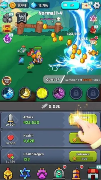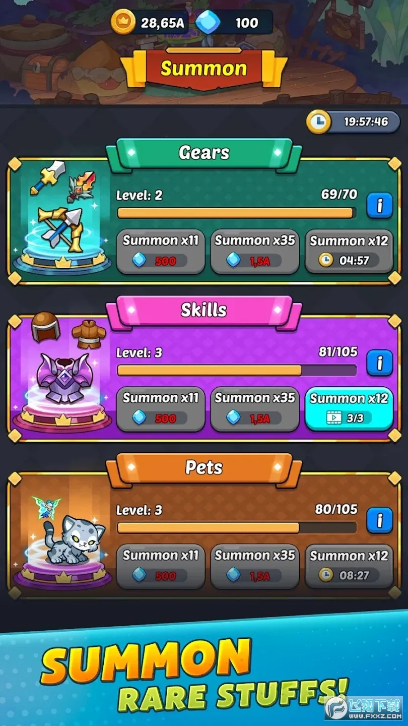 2. 玩法丰富多样,融合了竞技场和在线闲置RPG游戏元素,玩家可以扮演勇敢的战士,踏上冒险之旅,通过完成任务和战斗提升战斗力。