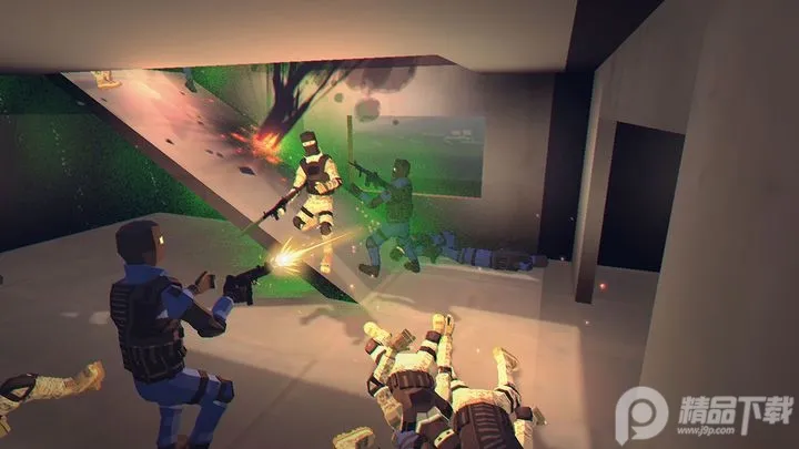 这款模拟枪战游戏的画风类似战地模拟器,玩法上继承了抢旗玩法,但无载具。游戏亮点是击中敌人后敌人会抖动。