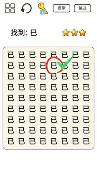 1. 只要点一下屏幕,就能选出正确答案,问题以类似汉字形式出现,测试对细节的观察能力。