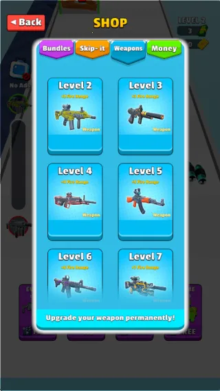 1、游戏融合动作与武器打造策略,带来身临其境体验。玩家需不断射击目标升级武器,解锁更强子弹,战斗更具策略性。