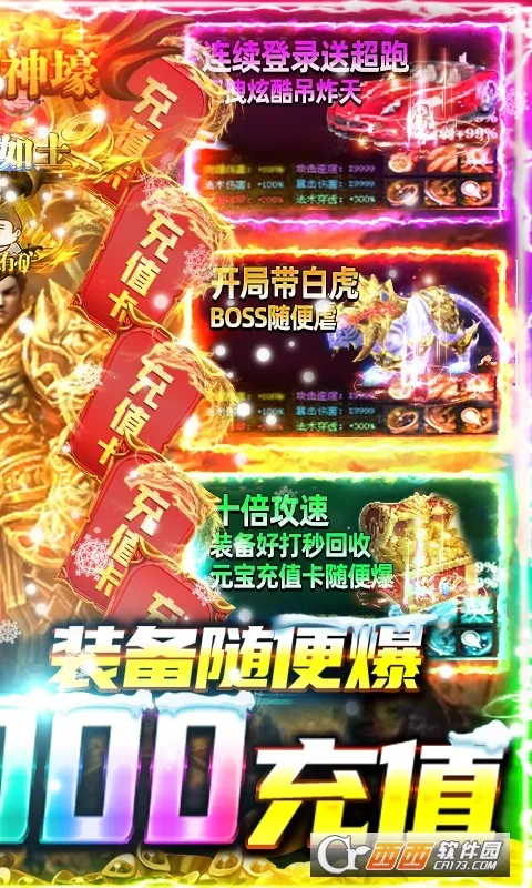 3. 上线即送vip特权,装备全靠打且保值耐玩,还有十倍在线回收装备功能。