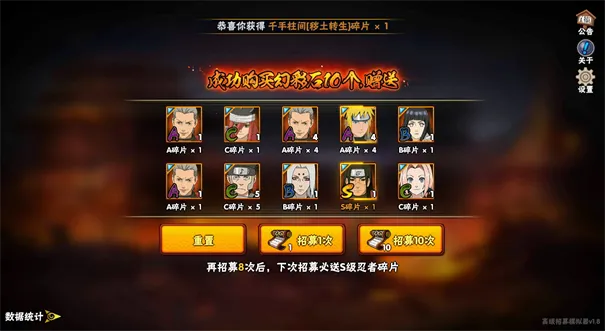 2. 十连必中S级碎片,轻松解锁强力忍者。