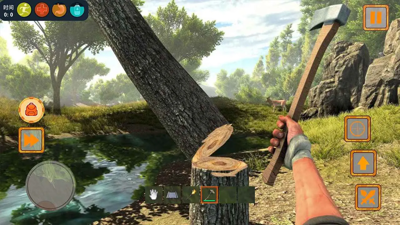 游戏中,你得优先解决饥饿,谨慎采摘野果防中毒,收集木材石料造工具武器保安全,还要建造房屋躲危险。这里有动态天气系统和庞大探索地图,能根据实时身体数值制定策略。