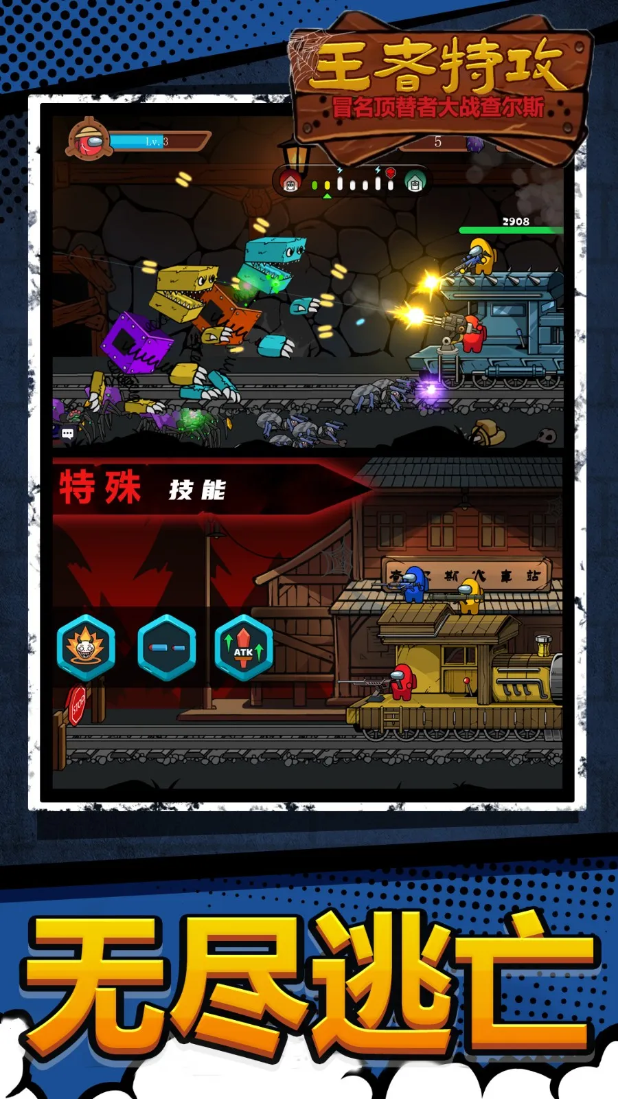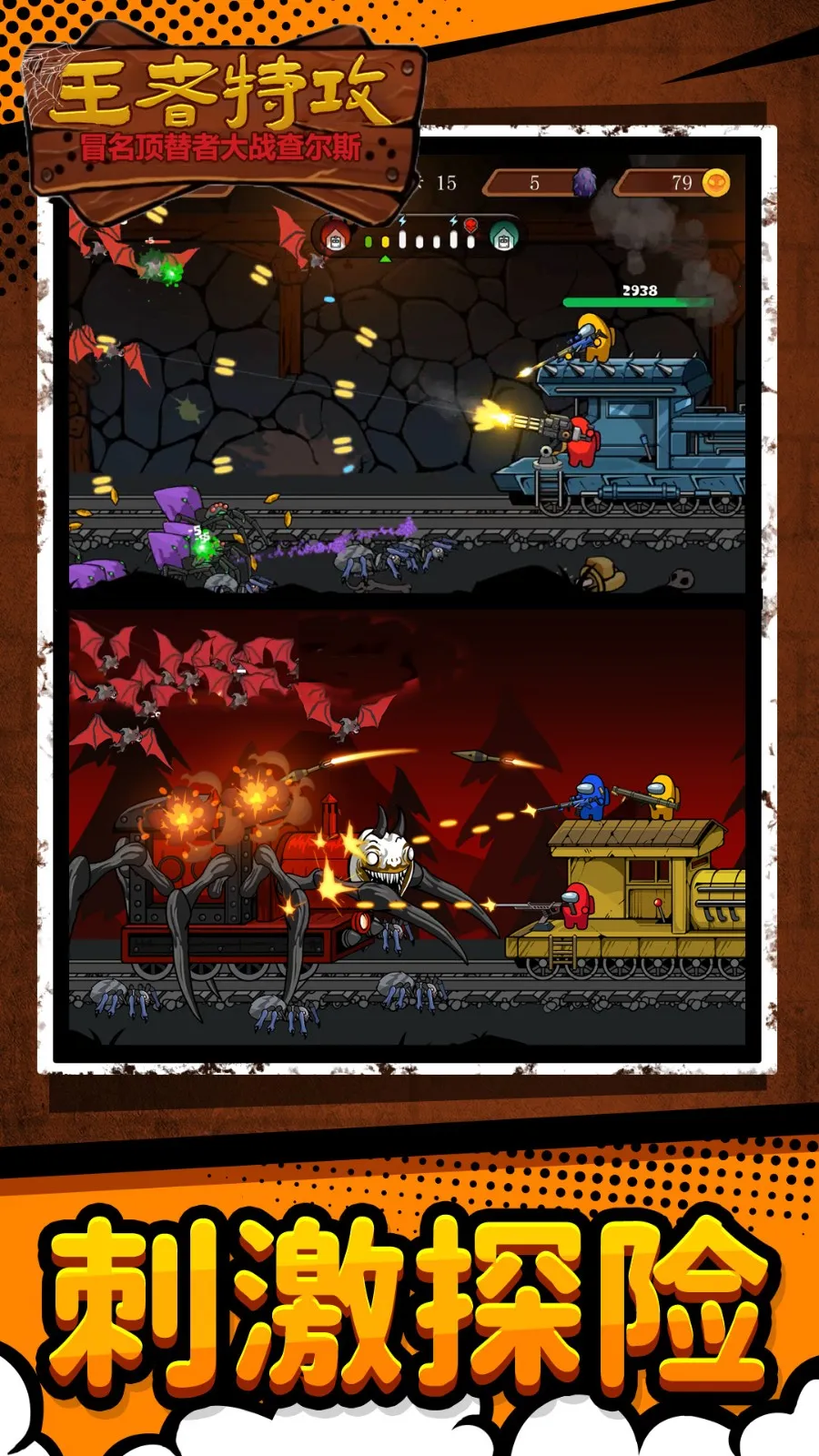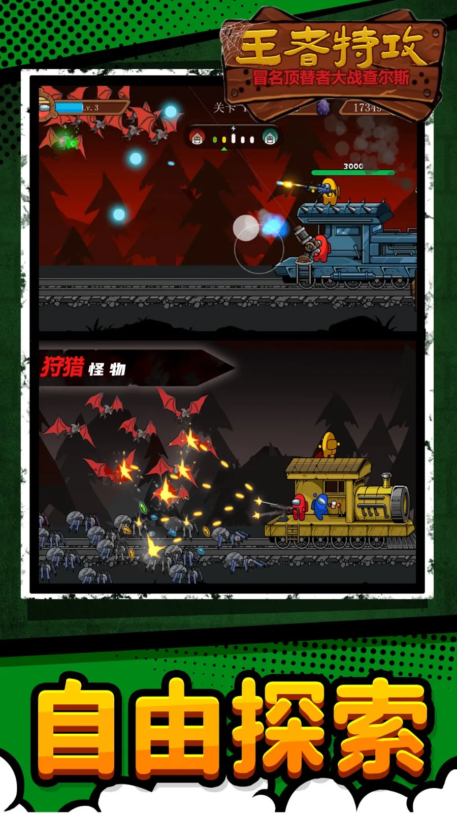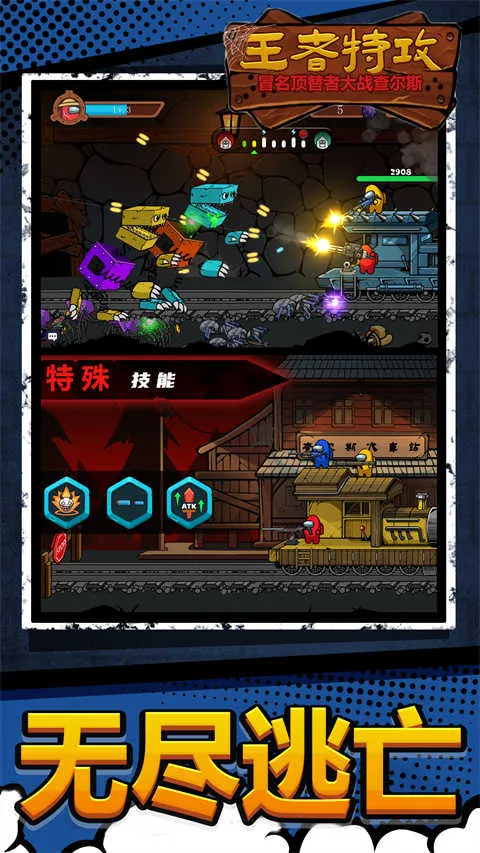 王者特攻队是一款超刺激的横版闯关逃生游戏!它融合像素美学与高速节奏,以冒名顶替者机制为灵感,引入小火车查尔斯等标志性角色,构建出独特的生存舞台。这里有多种主题地图,像工业废墟、霓虹都市等,每个地图都有独立机制和怪物生态。游戏有单人突围、限时挑战等模式,满足不同节奏偏好。面对班班、秋秋等行为模式各异的敌对单位,你得结合实时瞄准、道具投掷,比如眩晕弹、地雷等来应对。全图遍布伪装陷阱和随机事件,100多个不重复关卡,每次探索都充满未知。操作简单,点击屏幕滑动控制射击方向,松手即发射,虚拟摇杆自动控制移动。还能解锁角色、武器、皮肤,构建专属战斗流派。快来体验这紧张刺激又充满乐趣的冒险闯关之旅吧!