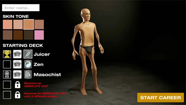 阿诺模拟器是一款超有趣的卡牌构筑类手游。它能让你通过打出卡牌进行健身训练,每卡消耗对应能量值,打出后人物做相应训练,右侧增加对应部位能力值。还能用能量饮料补充能量,能量耗尽可进入下一天,刷新卡牌和能量值。你要在规定天数内达到目标值,之后能参加比赛。
