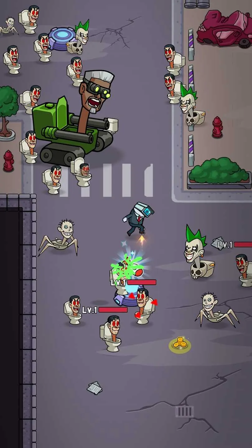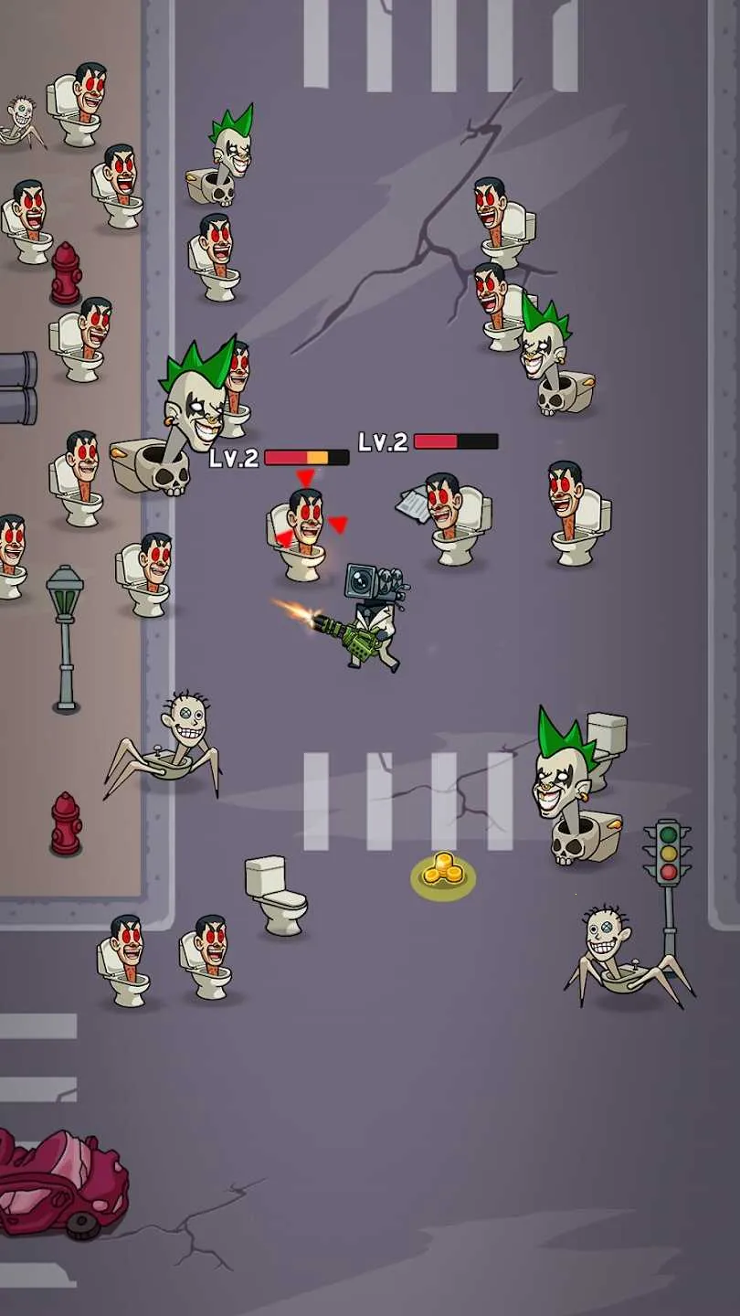 2. 玩法丰富,能免费解锁角色,随着动感音乐攻击怪物,过程中获取金色厕纸提升属性并得磁铁道具。