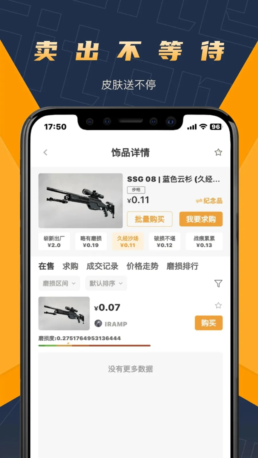4. 设有 CS:GO 皮肤磨损排行榜,饰品排名清晰,能精准鉴定饰品属性,还可便捷高清检视,无需启动游戏就能查看超高清效果图。