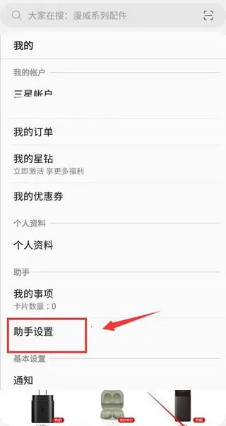 打开三星生活助手App,点击界面右下角的「我的」选项