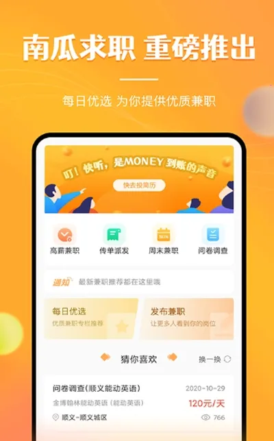 1. 岗位丰富:兼职南瓜安卓版汇集大量兼职岗位,涵盖线上线下,无论是在校大学生、宝妈还是上班族,都能找到适合自己的。