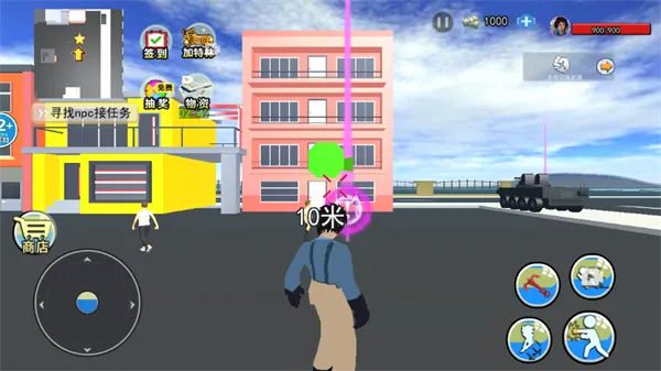 2. 玩法自由,操控主角完成任务、击败敌人获取资源,购买武器提升战力推动剧情,过程欢乐。