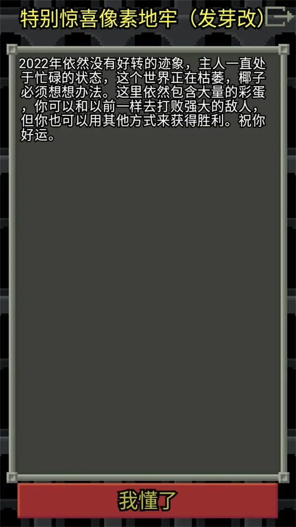 惊喜的像素地牢原名SPSPD,基于发芽地牢改版,有像素风。可从八个职业选其一冒险,有大量食材,能依食谱合成食物提升属性,还有创新合成等特色,快来下载体验。