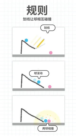 2. 玩法简单却具挑战性,通过自由划线设计轨道让小球相撞,很考验逻辑推理和想象力。