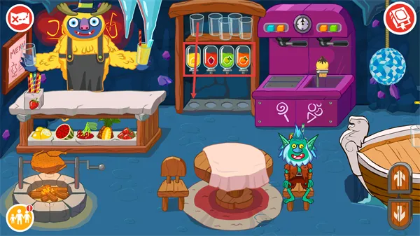 3十余处特色场景各有玩法核心,厨房主打烹饪互动,岩石舞台聚焦角色表演,可自由搭建迷你故事场景。