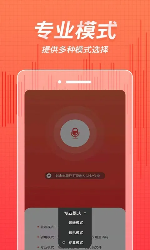 1. 高品质音频录音,无时长限制,MP3格式清晰记录。