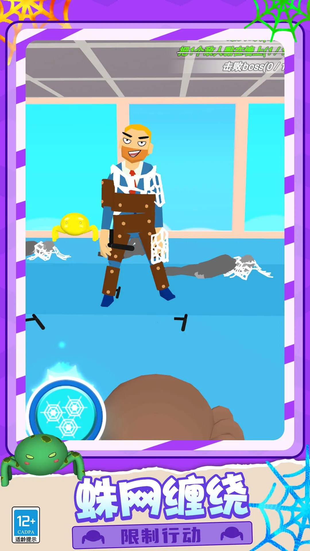 2. 操作简单解压,发射蛛丝命中目标,不仅能造成伤害,还能攀爬墙壁、跨越陷阱,接近目标完成任务。