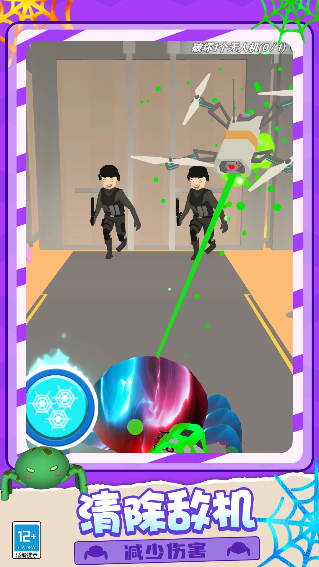 4. 有多种不同武器和道具可供选择,能更好施展战斗力,可根据情况灵活变通,通过摇杆控制蜘蛛运动、攻击敌人或控制特殊物品,安全度过每一关卡。