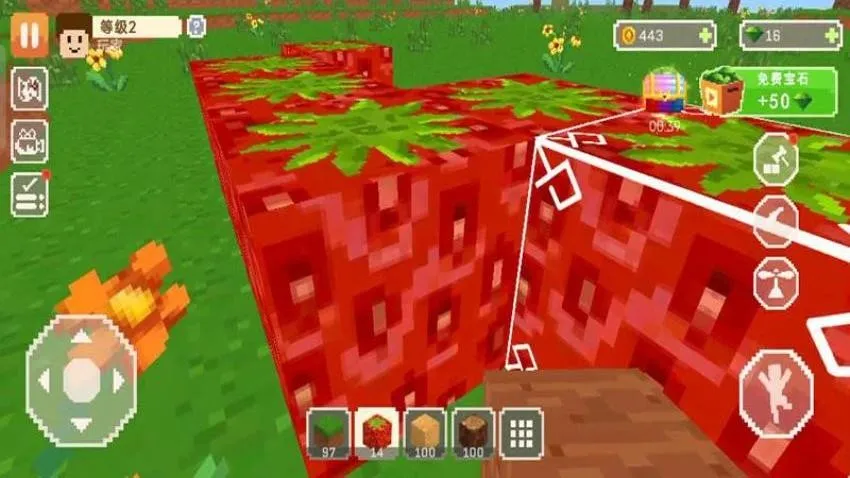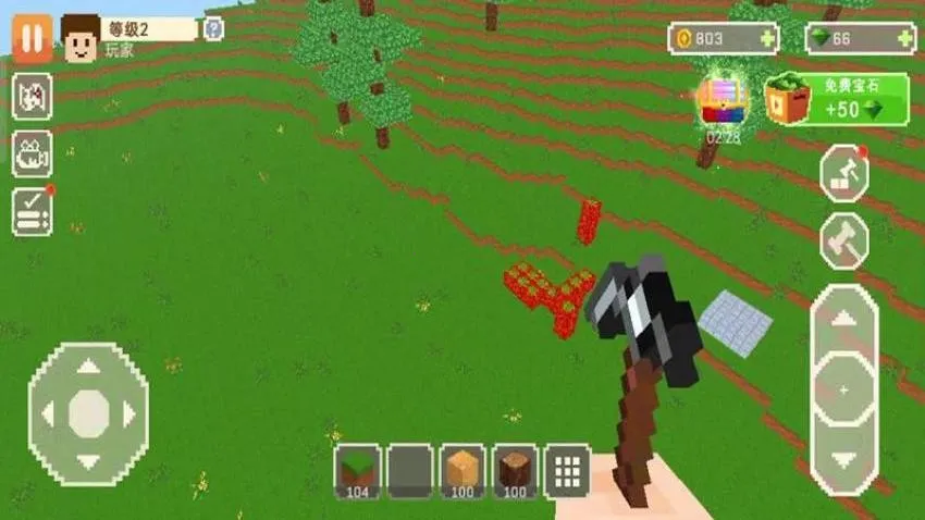 4. 玩法教程简单易懂,观察按钮找道具,寻找关键方块类型用于建造,结合方块打造美丽环境,在线时长可获奖励。