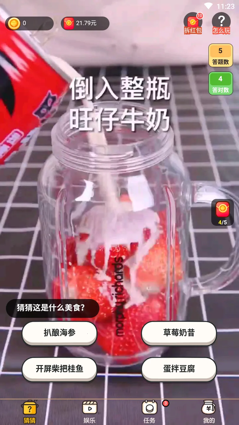 3. 猜对美食有红包、小道具奖励,对的越多福利越丰厚,还有趣味任务。