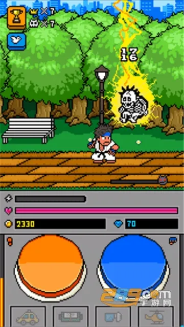 3. 采用传统格斗游戏的横版风格,趣味性十足,添加了诸多有趣元素,像敌人被击中时的表情等,战斗中还能让人开怀大笑。
