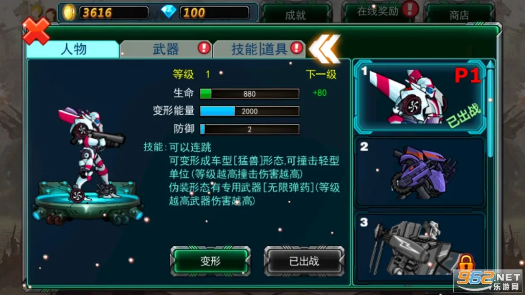 3. 拥有炫酷的机甲变形,以及导弹轰炸、闪电爆击等多种炫酷技能,还有强大丰富的Boss战。
