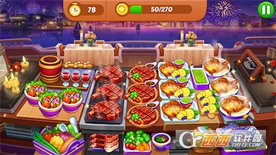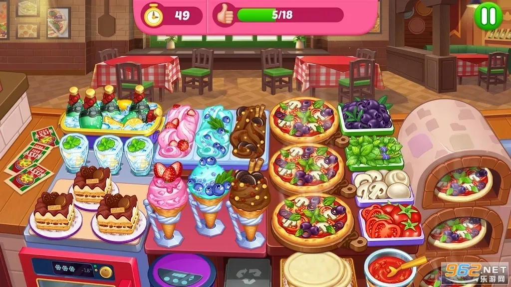 3. 可烹饪数以百计的美味食材,丰富烹饪食谱,点击正确食材制作目标美食,记得及时上菜以免食物烧焦。