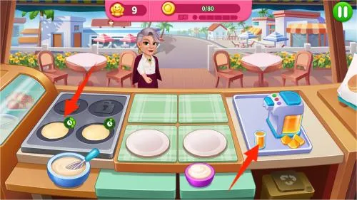 玩这款游戏,你可以选定关卡开启挑战,开局前能清楚看到任务目标。营业时点击面糊煎制,右侧自动调配饮料。按顾客需求添加调味品和佐料,最后把成品送给客人就能得分和获奖励。