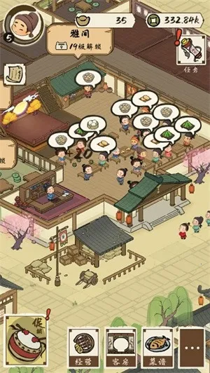 4. 能随时举办促销吸引客流量,营业时可能触发随机事件获丰厚报酬,还需在客人耐心值耗尽前备好菜肴,不然会收差评,真实点评系统影响客栈曝光率,可升级厨师和店小二提高出餐效率,适合时间碎片化玩家。