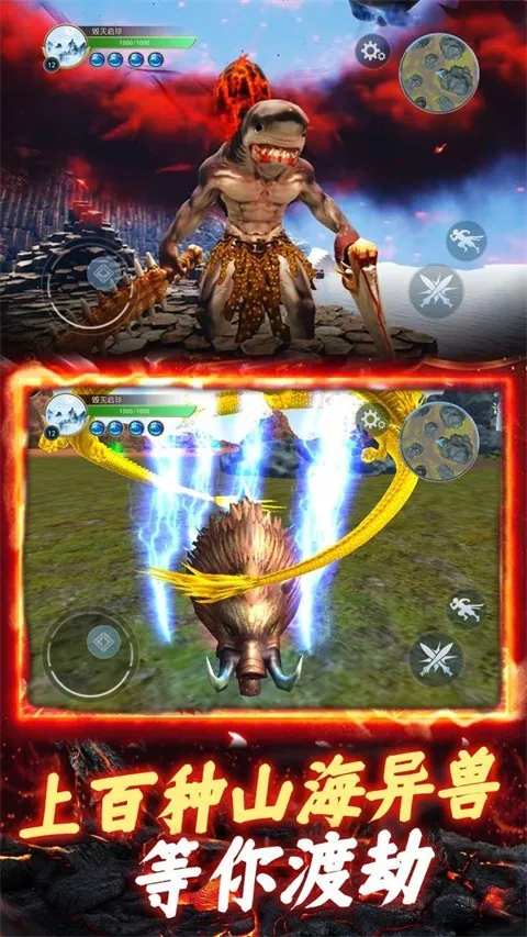 2. 超真实3D场景,人物与野兽建模出色,带来沉浸式洪荒世界冒险。多个场景无缝切换,可探索混沌洪荒原始世界。