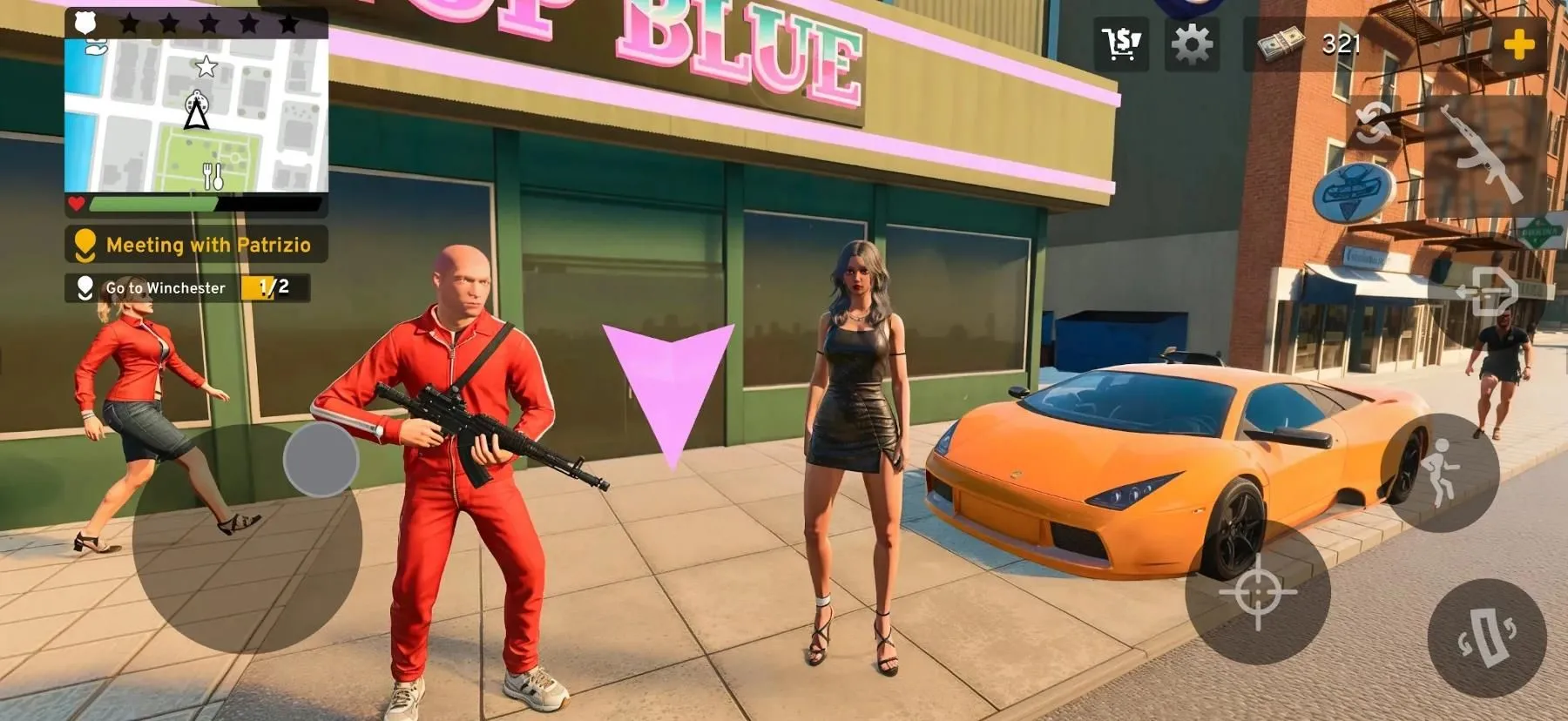 3. 有丰富武器库,可打击黑手党和团体,支持一方与另一方大战。能探索巨大城市,与居民互动,完成任务或制造混乱,自己主宰命运。